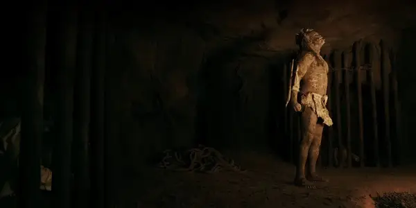 Plemieniem troglodyte stojącego w ciemnej jaskini w Bone Tomahawk