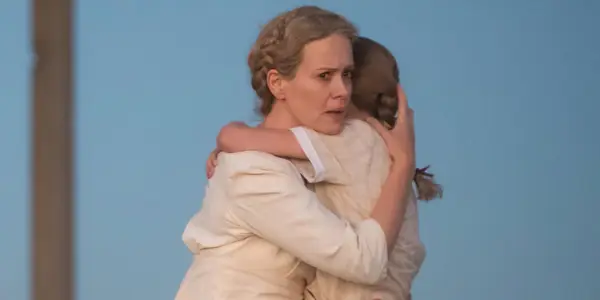 Sarah Paulson jako Margaret wygląda na przestraszoną, trzymając Ollie Alony Jane Robbins i zatrzymuje się w oddechu