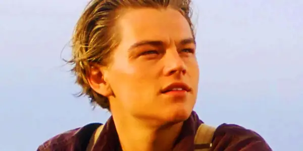 Young Leonardo DiCaprio jako Jack Dawson w Titanic patrzy poza ekranem